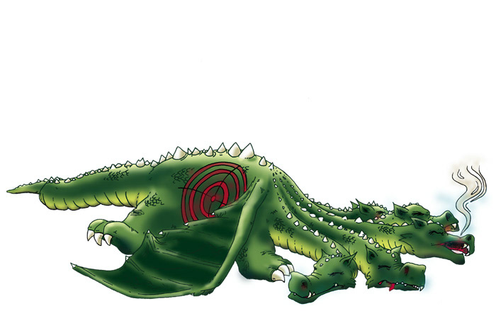 Kernproblem dargestellt als fünfköpfiger Drache.